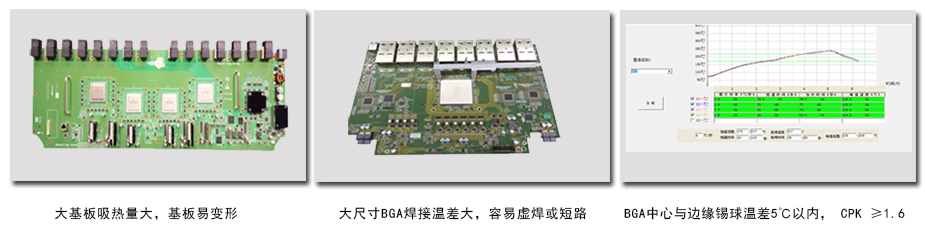 優(yōu)越的溫控性能和獨特的加熱裝置,保證屏蔽蓋與BGA之間的溫差>30℃以上,避免二次熔錫(屏蔽蓋返修蓋內(nèi)BGA錫球溫 度低于200℃)